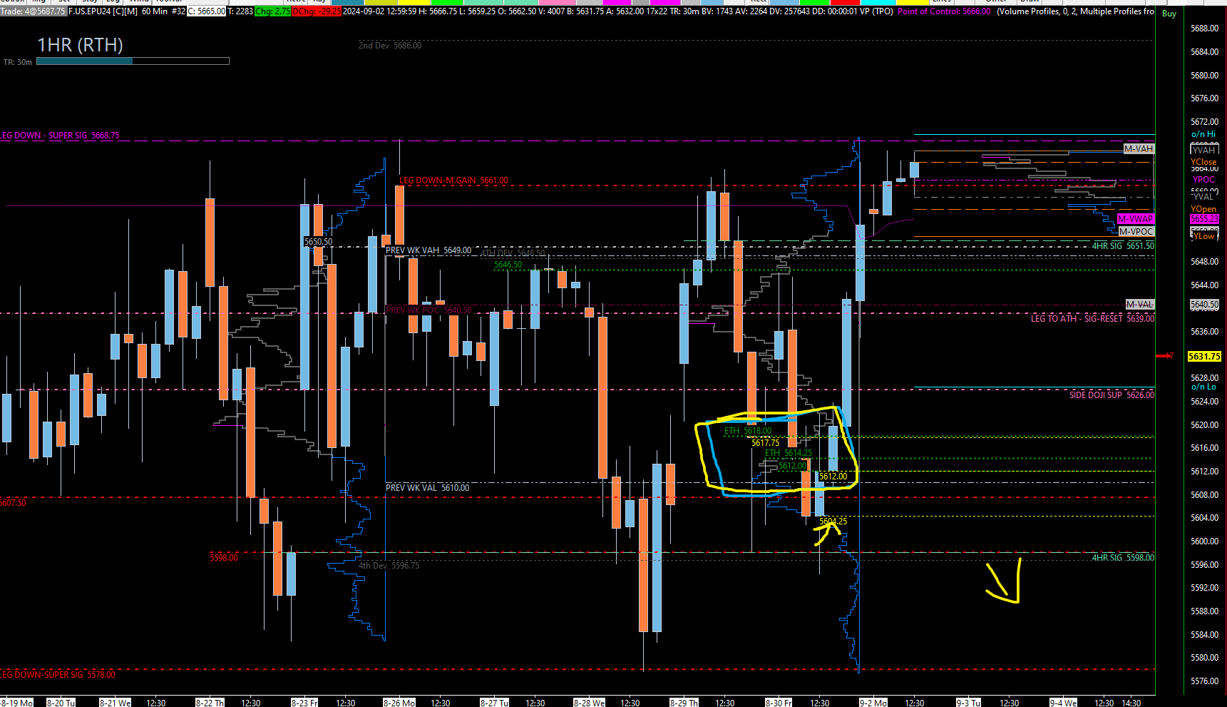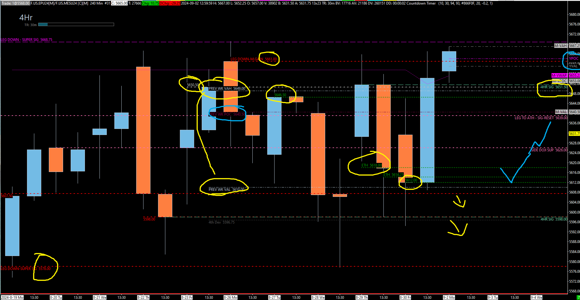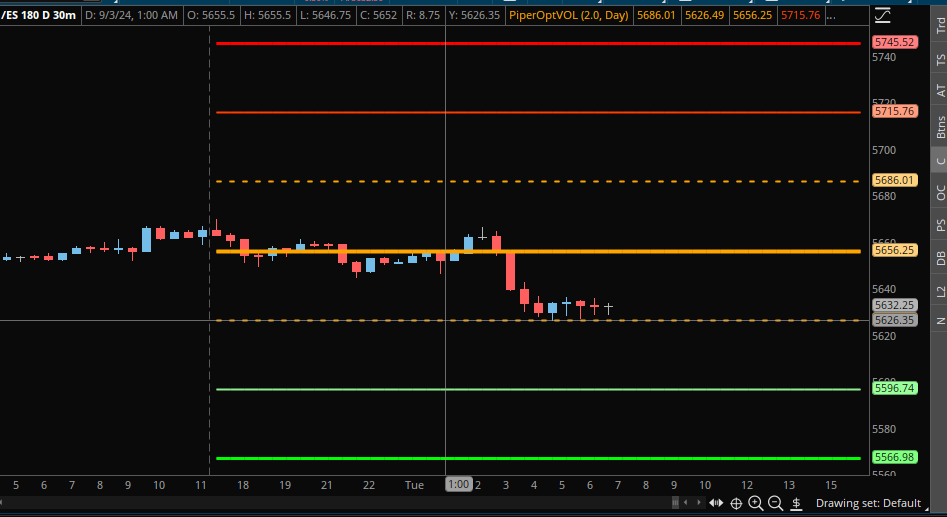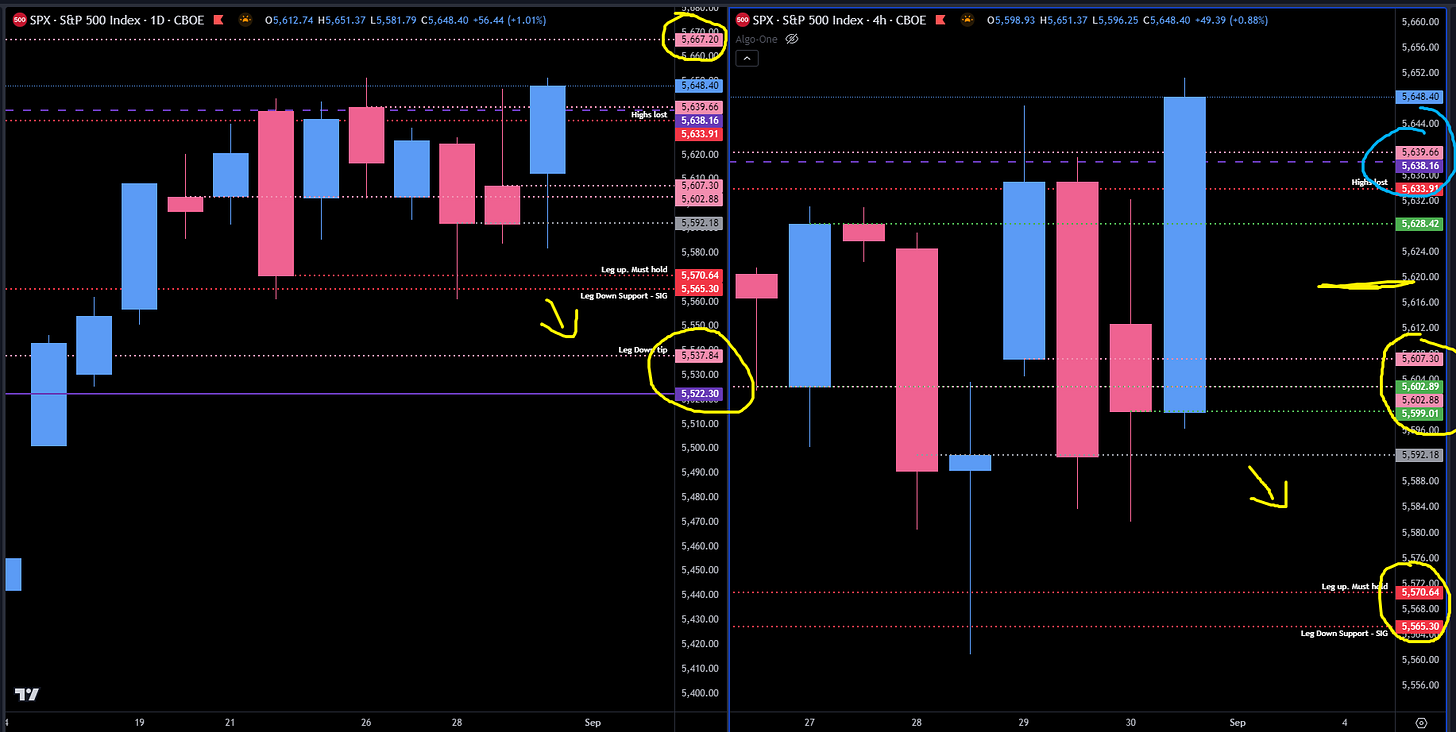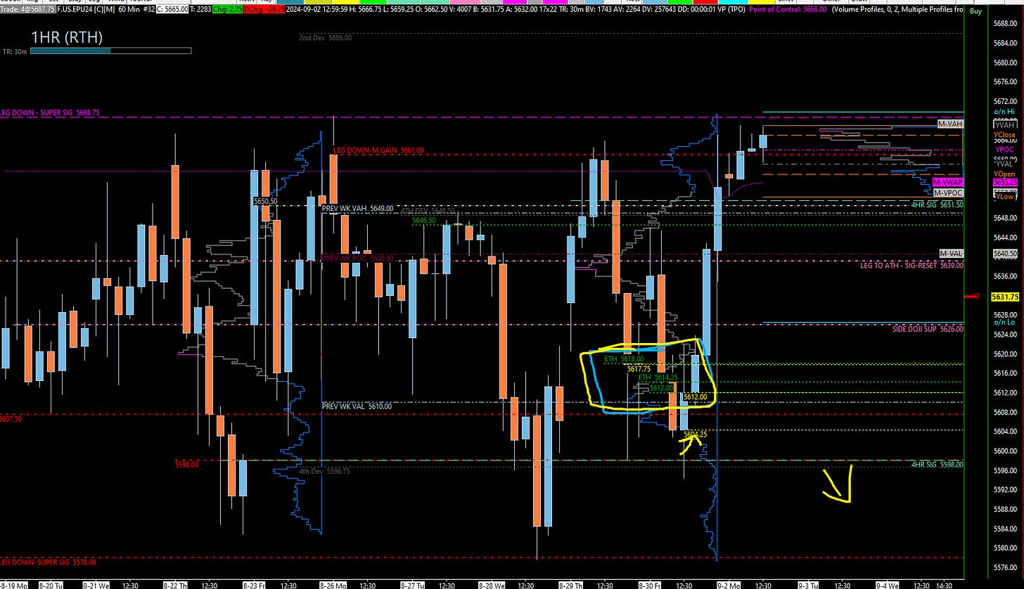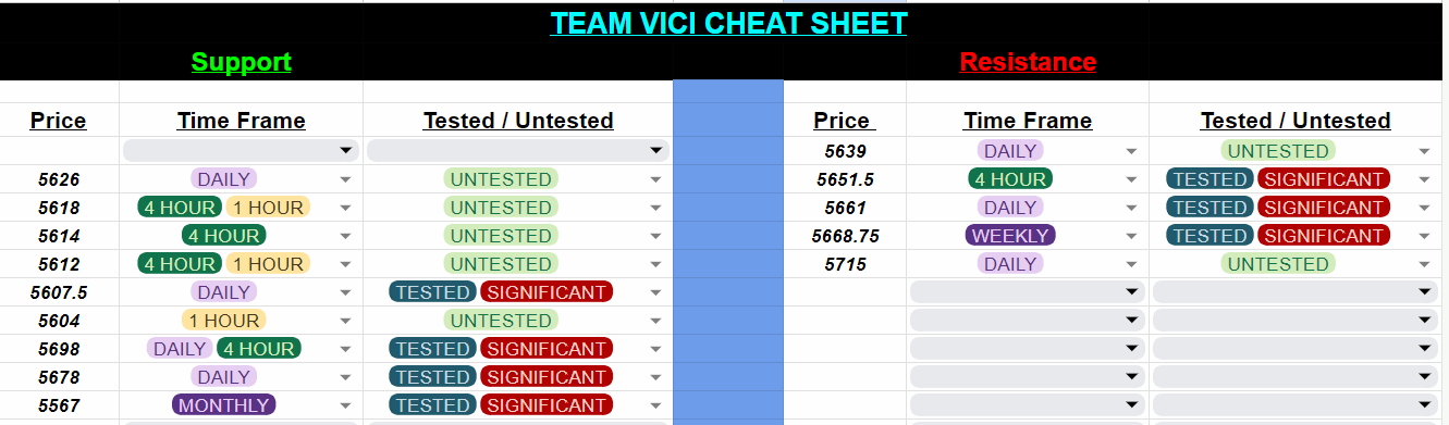 Resistance: There's significant overhead resistance between 5650 and 5660. A breakout above 5661 to 5668 could push us higher, but be cautious as the weekly level I've highlighted continues to pose a challenge.
