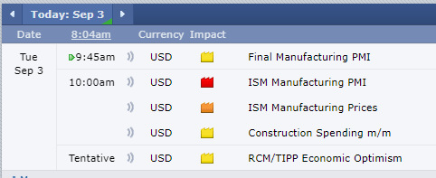 I hope everyone is well-rested after the Labor Day weekend. As we kick off the week, be mindful of the red tag news scheduled for 10:00 a.m. EST, which could stir some market activity.