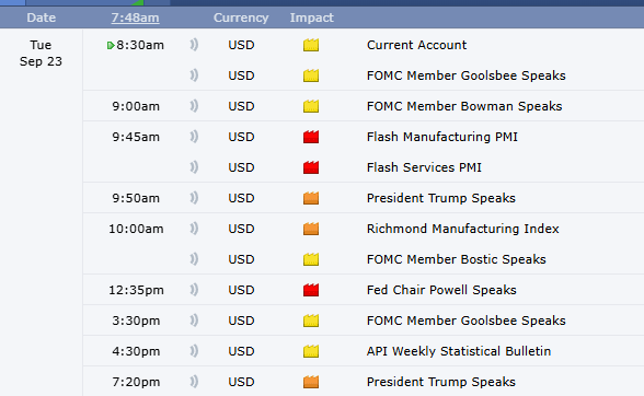 After yesterday's unbelievable rally, price has balanced all night in a tight 53-point range, hovering at the highs near yesterday's point of control. This market is clearly still wanting to move higher, but we don't know if they're going to drop before they pop. We have a full day of news with Flash Manufacturing PMI, President Trump, and Fed Chair Powell all speaking. We need to expect some volatility. With the air getting pretty thin up here near 25,000, let's get into the levels.