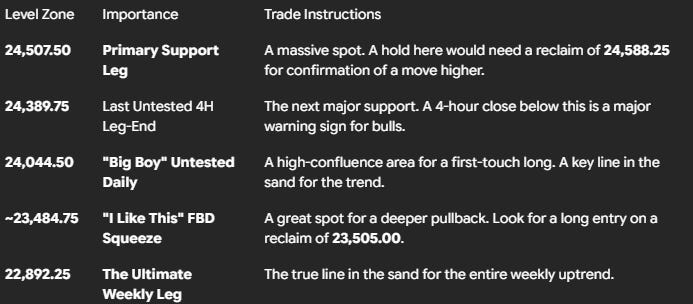 • Primary Line in the Sand: The daily leg up at 24,507.50. A daily close below this is the first major bearish signal.