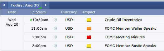 For news today, we have one red-tag event: the FOMC Meeting Minutes at 2:00 PM ET. I don't expect extreme volatility from this, as the Fed's decision is already known, but we always have to be prepared for a shake.