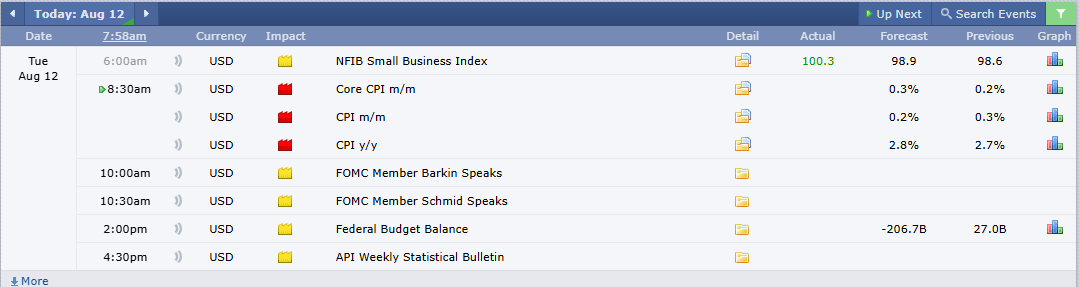 Good morning, everyone. Today is Tuesday, August 12th, and we need to be on high alert. We have big, red-tag news this morning with the CPI inflation reading at 8:30 AM ET. On top of that, we have Fed speakers scheduled throughout the day, who will undoubtedly have reactionary comments. We need to stay on a swivel, as this environment is ripe for volatility.