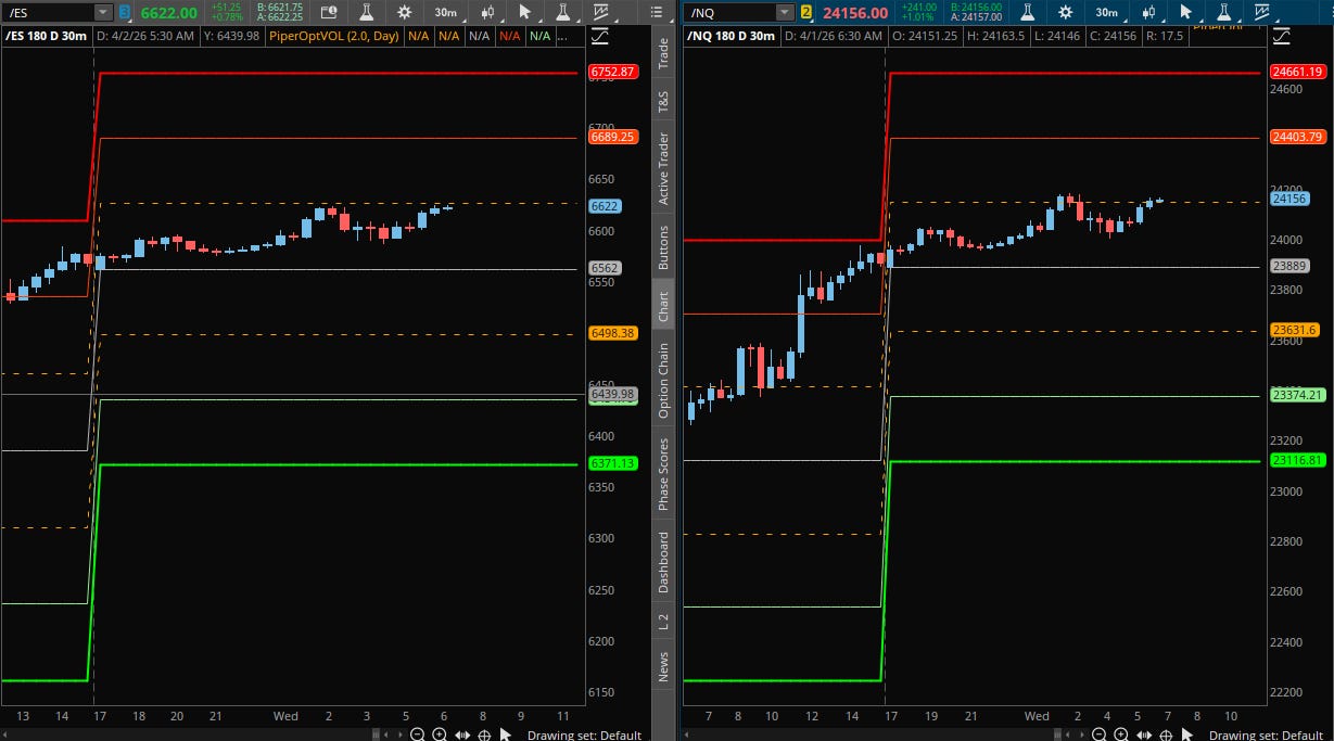 Morning everyone. Today is Wednesday, April 1st — the start of a new month — and we come off another amazing day in the trade plans as we had the 6474.00 level as our main breakout level, knowing that if we pushed above this, we would squeeze insanely hard. That is exactly what happened — we filled the gap up at 6518.75 and pushed higher into the 6581.50 area. Congratulations to all trade plan members who followed along and took advantage of the amazing squeeze.