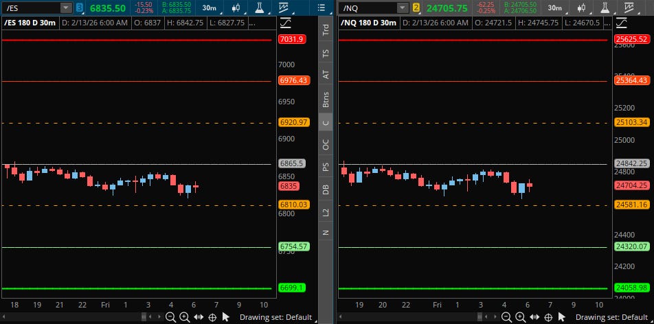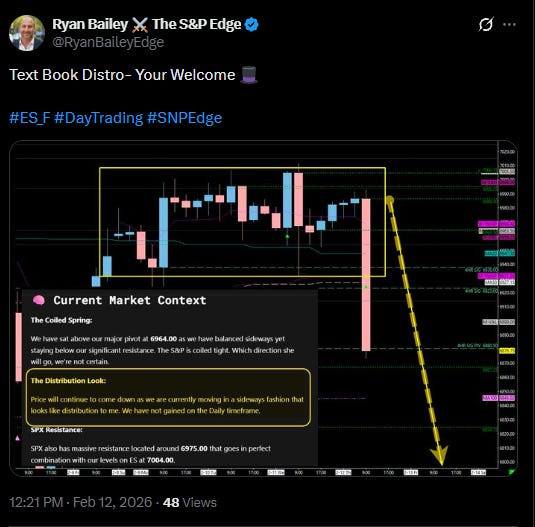 Today is February 13th. Friday the 13th. (Spooky) We had an insane day once again in the trade plans, calling the high at 6989.75 Daily and ultimately the upper range at 6995.00. We also pegged it perfectly for our SPX Traders, leading us down well over 100 points. This was a pre-planned short that we’ve been waiting for since Monday and it finally paid dividends. Congratulations to everyone who took advantage of this, as yesterday was the type of day that months and careers are made.