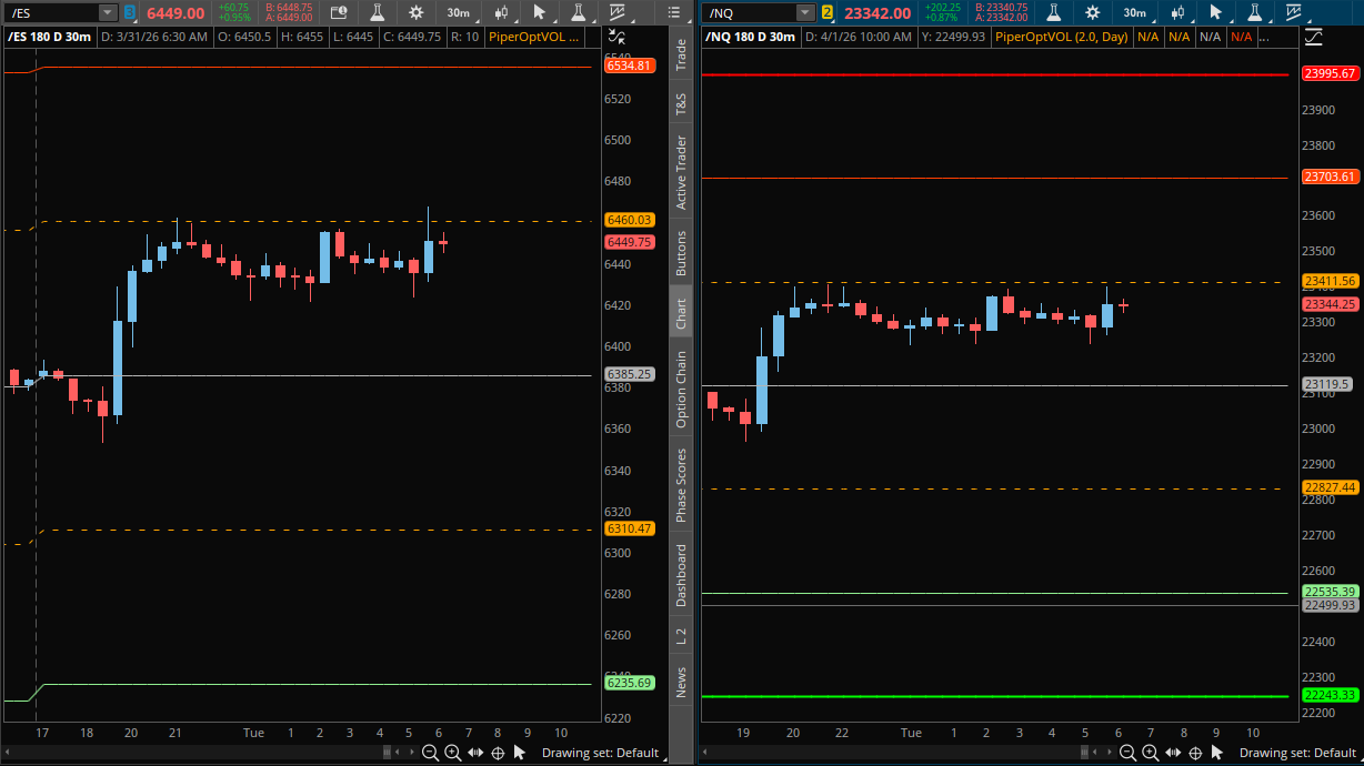 As we come into the morning, we find ourselves in a very interesting predicament. We had an area we targeted in the Week in Review for a sweep at 6362.75 — they actually did sweep this area and popped significantly over 120 points into our Weekly yesterday at 6474.00, which ultimately brought us down once again to sweep this level and Sunday’s Globex open low. They did this last night in the overnight session, once again bringing us up with very similar price action as we saw on Sunday, all the way back to our major resistance area at 6474.00. We have now double-bottomed at the lows, and this is going to be a huge spot for us this morning.