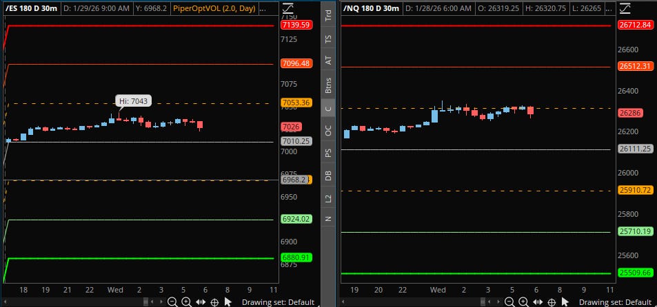 Morning everyone. Today is January 28th, it is Wednesday. We had an insane day yesterday. We called the low at 6989.00, we called the high reversal at 7016.50 after SPX made new All-Time Highs, and then we called the buy in the middle at 7002.25. Yesterday was an insane day for our trade plan members and members of our Discord Community, as we essentially caught every single turn of the market and our profit and loss showed it.