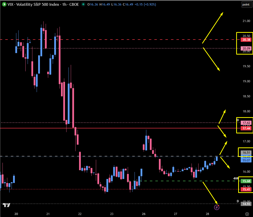 Tailwind: If they stay underneath the 16.51 Weekly pivot (and 15.61), we will continue to drift higher and potentially push lower on VIX to the Major Daily Support at 15.41.