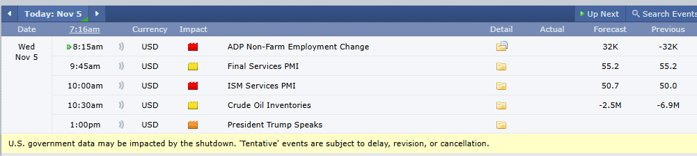 We have some potential catalysts today. Red Tag News for ADP (8:15 AM) and ISM (10:00 AM) are on the schedule, but given the shutdown, we don’t know if they will happen. The real wildcard is the Supreme Court hearing on Trump’s tariffs. If they rule the tariffs illegal, it could disrupt his entire presidency, and the market would be distraught. This could cause a massive move in either direction.