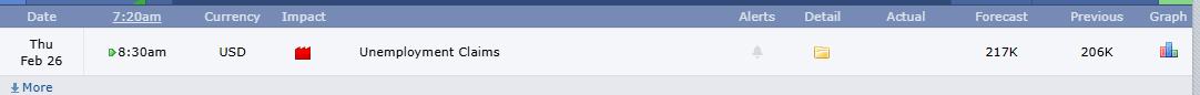 News: 8:30 AM Unemployment Claims (Red Tag). This is a very volatile and very important news event; we should watch for a shake at this time.