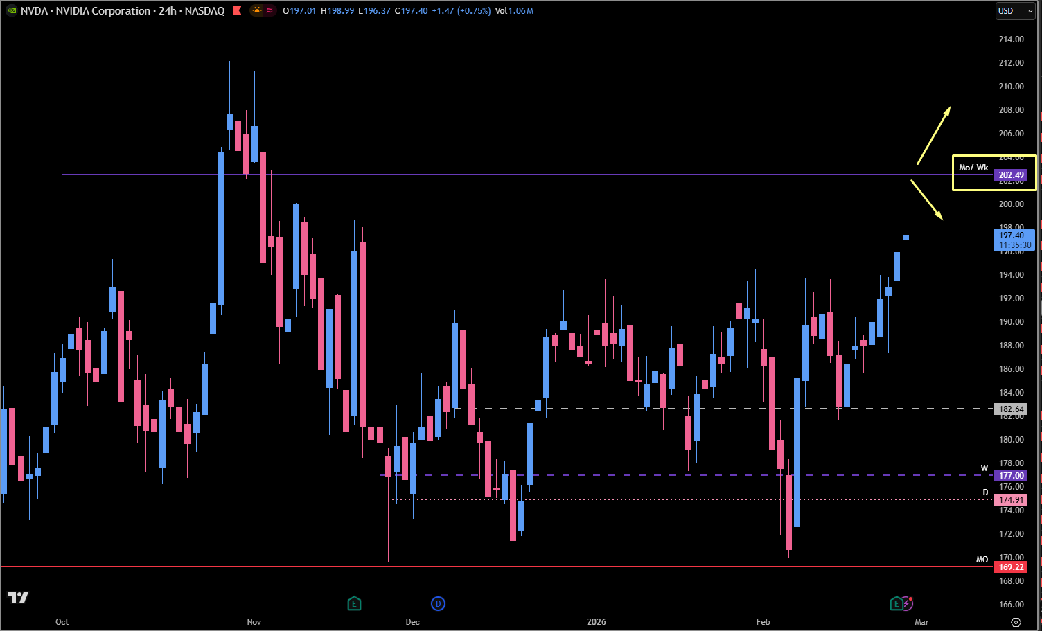 Coming into the morning, we are coming off of Nvidia earnings yesterday as they once again crushed earnings, setting the bar even higher. This pushed the S&P up over 25 points in the overnight session, only to hit the massive Nvidia resistance Monthly level. ES, correspondingly pulling back over 50 points in the overnight. However, we found support on our large Weekly at 6943.50 which held us up all night and has currently pushed us right back to our closing location and massive Above/Below area at 6965.00.
