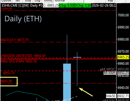 Today is Thursday, February 26th. Yesterday the trade plan gave us the exact momentum breakout above the Daily at 6928.00 which propelled us all the way to our massive magnet level at 6964.50. A big salute to all those who took advantage of yesterday’s breakout and target, as this was foretold in both the Post-Market Breakdown the day prior and the trade plan that was released in the morning. For those of you with patience who were able to sit the grind out, congratulations, you scored big.