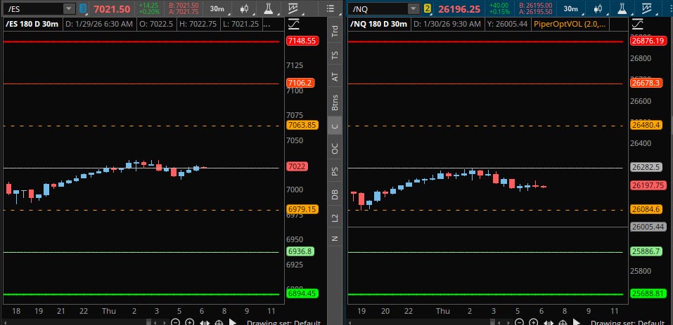 Good Morning everyone! Today is January 29th, it is Thursday. We come off a huge day post-FOMC where we had two amazing longs yesterday. The 6995.00 4-Hour held and played for 35 points, and then again the epic long at 6977.75 Weekly that played to the tick for over 50 points. We are still getting momentum from that right now. Congratulations to all those who took advantage of the trade plans; yesterday was an extremely beneficial day for those who were patient.