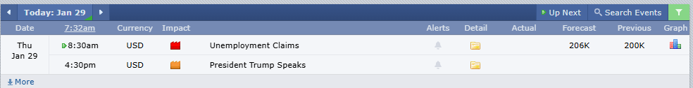 News: 8:30 AM Unemployment Claims (Red Tag - expect a shake). 4:30 PM Trump speaks (Post-Market - expect insanity).
