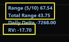 Range: Expected range of 67.50 points. We have moved 43.75 points, leaving approximately 25 points left in the tank above or below.