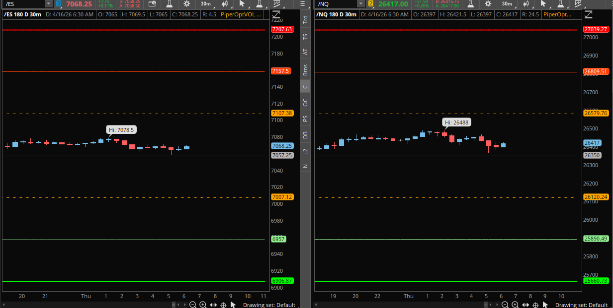 Morning everyone. Today is Thursday, April 16th, and we come off another awesome day in the trade plans as we balanced at the critical Daily at 7003.75 and the trade plan left us pointed higher looking for all-time highs above 7043.00 — which we nailed perfectly. We also spoke about the overhead resistance at 7022.75, which was our critical area to buy above. We were able to buy both the breakout and the retest, giving us a double-dip into support yesterday as we pushed higher into our highest Call Wall noted in the trade plan at 7061.00. Yesterday we finished the trade plan off strong, hitting all of our targets and completing our mission to conquer the markets just as planned. Congratulations to all those who took advantage of an incredible day yesterday — it was a low-volume grind up, but was extremely profitable and fruitful for those who were patient and let the process do its thing.