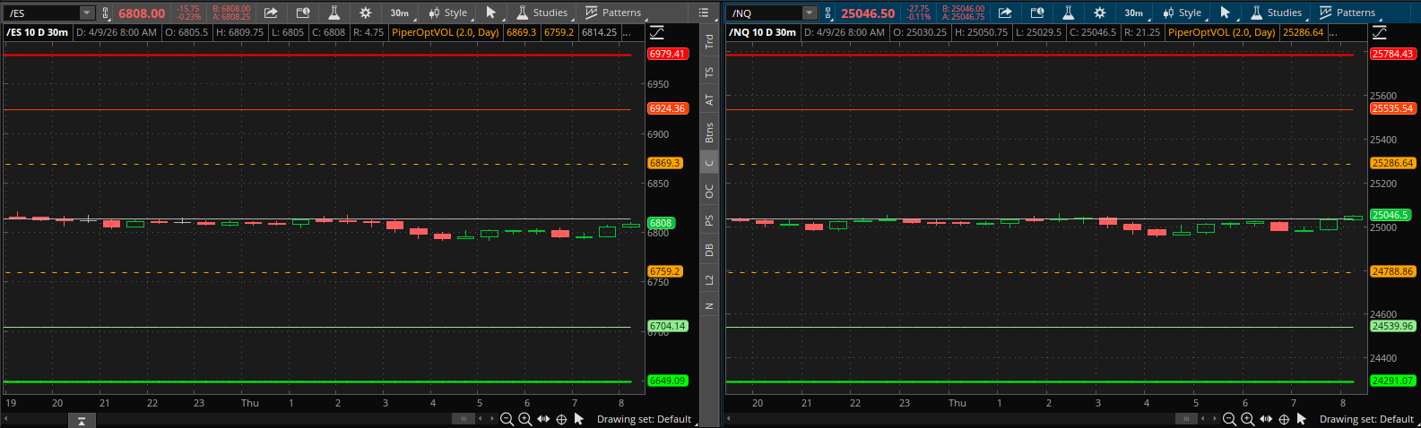Morning everyone. Today is Thursday, April 9th, and we come off another incredible day with the trade plans. We were able to call pretty much every long on the way down — the 6815.25 four-hour played for thirteen points, the 6806.25 four-hour played for twelve points, and then once again, the Daily at the low of the day at 6787.75 ended up playing for fifty points. All while still remaining with a slightly downside lean as long as we were below the 6832.50 four-hour, which was our major above/below pivot yesterday. Yesterday was an incredible day for subscribers as many of you put up huge money. In a sea of turmoil and chaos, S&P Edge subscribers remained on top — congratulations to all those who took advantage of such incredible price action.