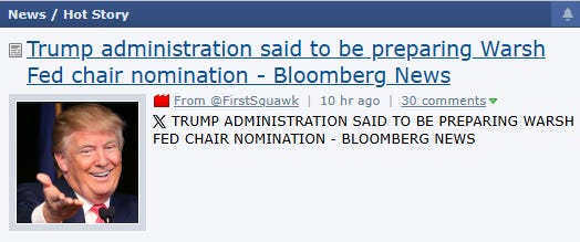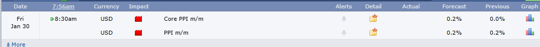 News: 8:30 AM Core PPI & PPI MoM (Red Tag). Trump put tariffs on Mexico and Canada last night (causing a 60-point drop). Trump is also nominating Kevin Warsh for Fed Chair—markets are undecided.