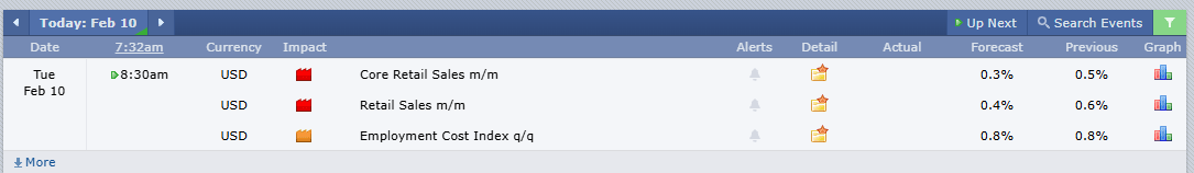 A detailed ES & VIX plan for Feb 10th, breaking down the Retail Sales volatility and the critical 7004.50 Untested Leg.