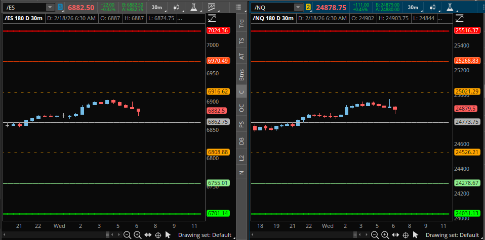 Morning everyone. Today is February 18th and we come off an absolutely gangbusters day yesterday. Our trade plans were so amazing that we caught the pre-market long, the post-open short, and we had the low of the day that took us all the way to the 6880.00 short at the high. It was absolutely unbelievable—probably one of our best trade plans ever. Congratulations to the team who took advantage of this as we had some serious profits put on the board. I am so proud of all of you.