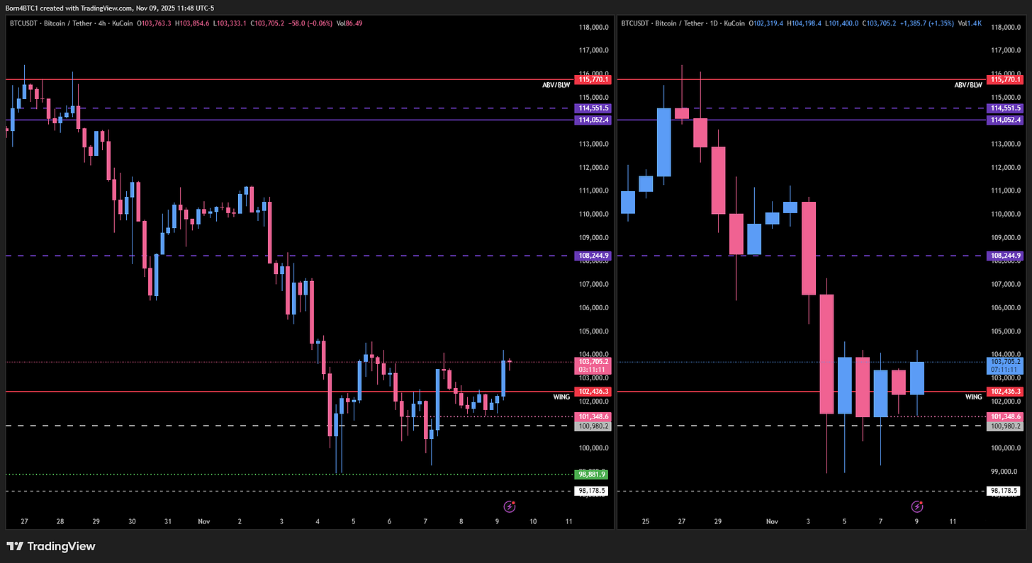 This was a massive stick save. Price opened below the 6738.00 sub-leg, flushed to our big 6660.00 wing play, and then came all the way back to close green and above 6738.00. This means the daily timeframe has not lost. My bias is long, and I believe we’re headed to at least 6805.50.