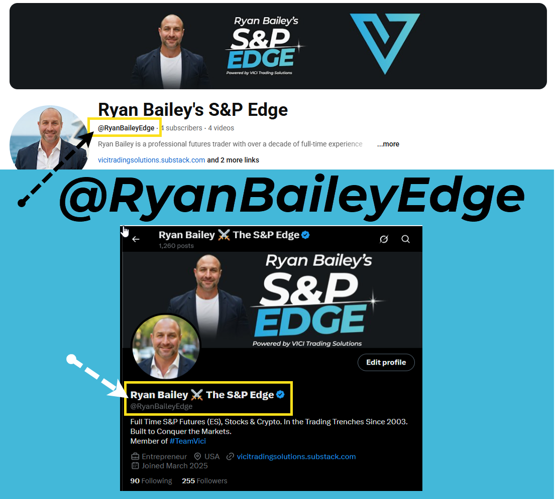 First and foremost, we are making a full transition over to the Ryan Bailey Edge brand. The Substack will get a full rebrand on Monday, where I’ll be giving you a more in-depth look at my profitability, the way I trade, and my process. We’re also launching a brand new YouTube channel and I’m becoming extremely active on Twitter, posting insights directly from the Discord room. This will be the last week this review is posted on the VICI YouTube. To make sure you don’t miss any of the new content, including daily post-market breakdowns coming soon, please follow the new channels.
