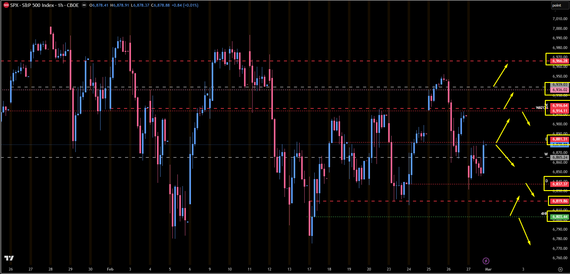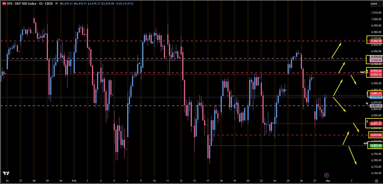 The Midpoint Pivot: 6881.00 (Daily). This is the big Above/Below spot. Above it, we have momentum to push into the 6914.00 - 6916.00 gap area.