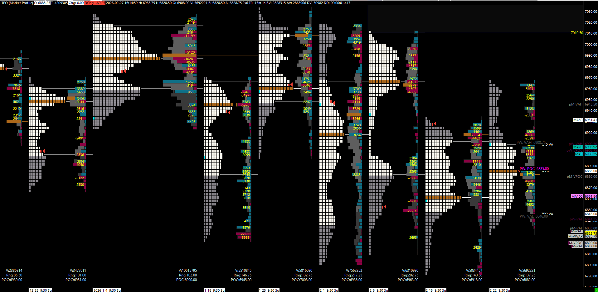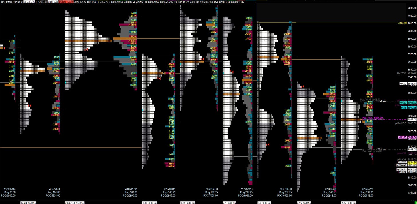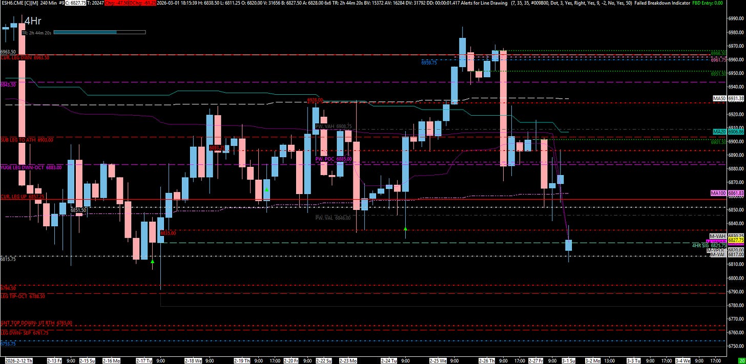 Levels: 6901.50 (4-Hour), 6903.00 (Weekly Momentum Shift), 6908.75 (Prev Weekly VAH).
