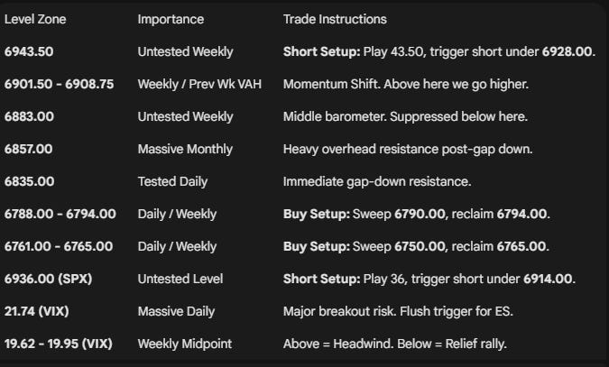 Actionable Setup (Short): If we push above 6914.00, look for the untested 6936.00 to play, get back below 6914.00, and dump it. That is how a pro trades a false breakout.