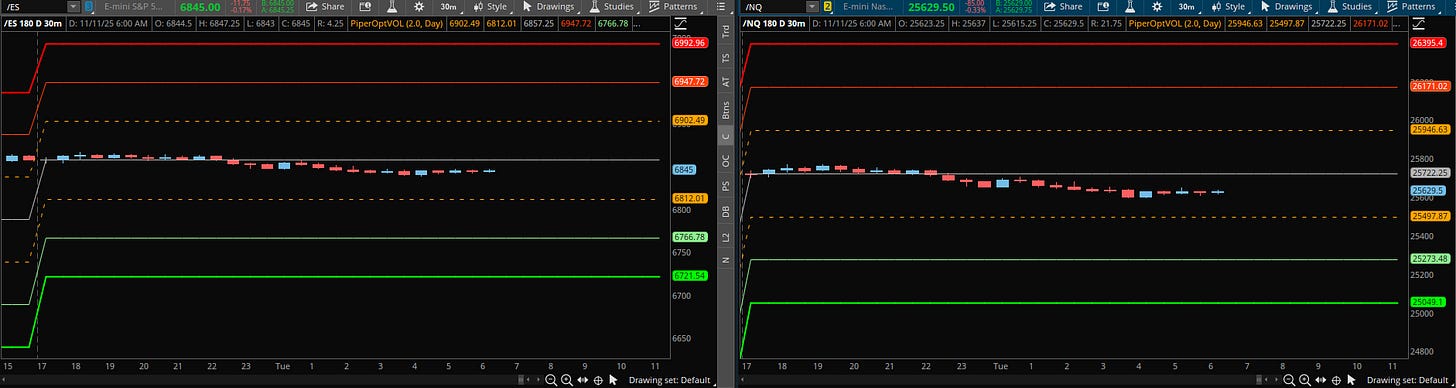 A detailed ES daily trade plan for Nov. 11th, breaking down the 6883.00 resistance, the key 6822.25 support, and multiple “alpha” long setups.