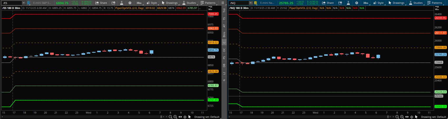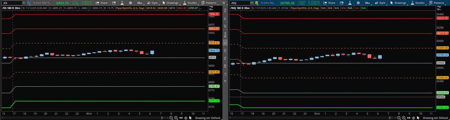 We continue to have an overnight drift higher as inventories are made long, and we are now above our significant weekly at 6883.00. Price continues to drift higher on low volume, and as we said in the post-market breakdown, we will more than likely make new all-time highs relatively soon. For now, we have no reason to want to short this market; we are only looking for pullbacks.