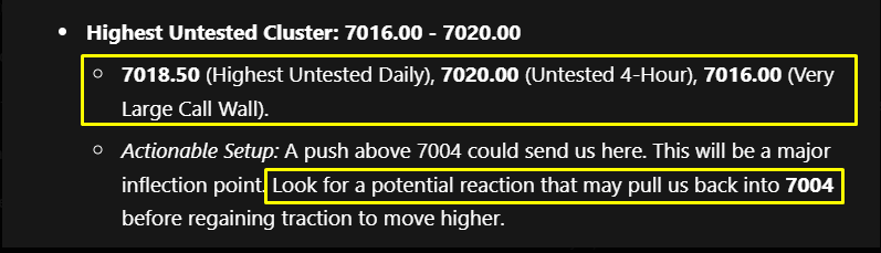 Gap Fill: Yesterday we did not quite fill the gap down to 6968.00, so be conscious that this is still a spot that could potentially get filled.