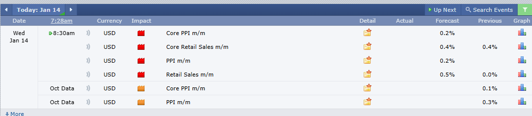 News: 8:30 AM EST Core PPI and Core Retail Sales. These are huge inflationary numbers guaranteed to get a shake. Be very careful.