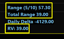 Range: Expected range is 57.5 points. We have moved 39, leaving approximately 18 points left. With increased volatility, this could expand to 25-30 points left in the tank.
