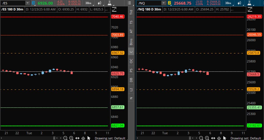 S&P Edge (ES) Daily Trade Plan: The Pre-Holiday Grind & The 6930 Pivot