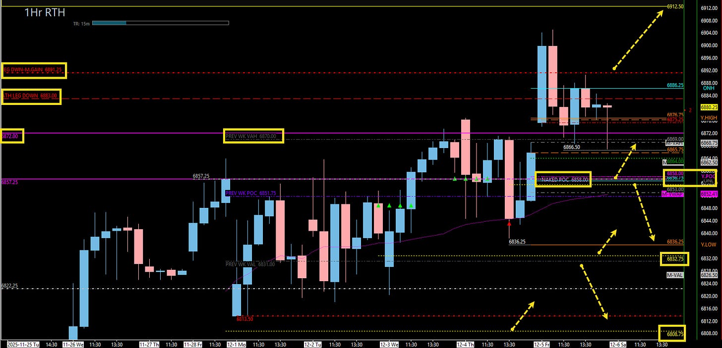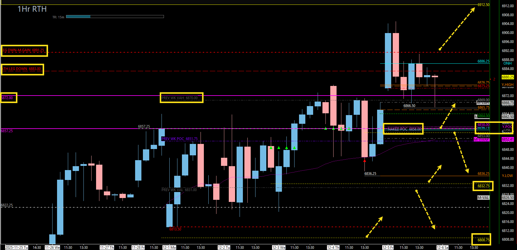 Weekly Leg Down (6883.00) and Daily Leg Down (6891.25). We need to get back above these to clear the path to ATHs.