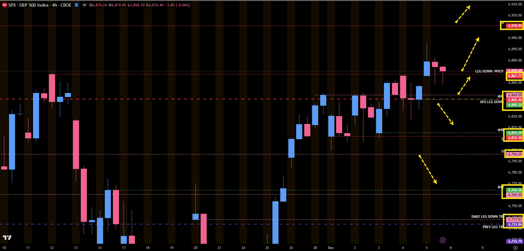 The Pivot: 6867.77 (Daily Leg Down). This is our pivot for “above or below.”