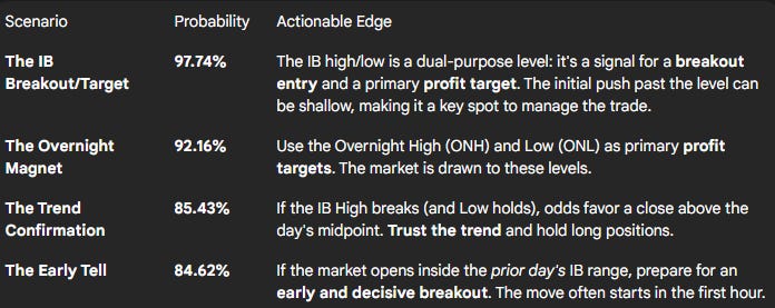 I recently went over a deep-dive statistical report on the E-mini S&P 500 (ES), and a few numbers stood out with such force that they simply cannot be ignored. These aren't just interesting data points; they are foundational probabilities that can shape your entire approach to the trading day. I'm talking about stats with probabilities over 80%, and today, I'm sharing four of the most powerful ones with you.