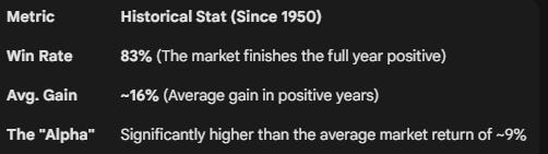 The logic is simple but powerful: January is the “risk reset.” How institutions position themselves in the very first week of the year reveals their hand for the next 12 months. If they are buying aggressively out of the gate, it signals confidence in growth, valuations, and the macro picture.