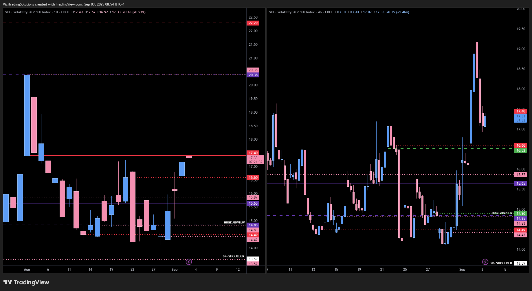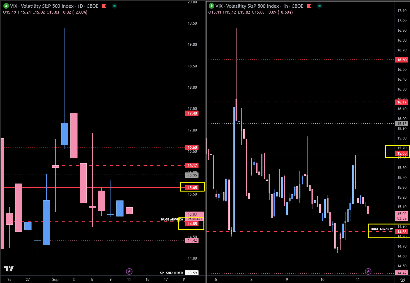 It is important to note that the VIX is currently trading above our 14.85 weekly pivot. This is the high-timeframe Line in the Sand for volatility.