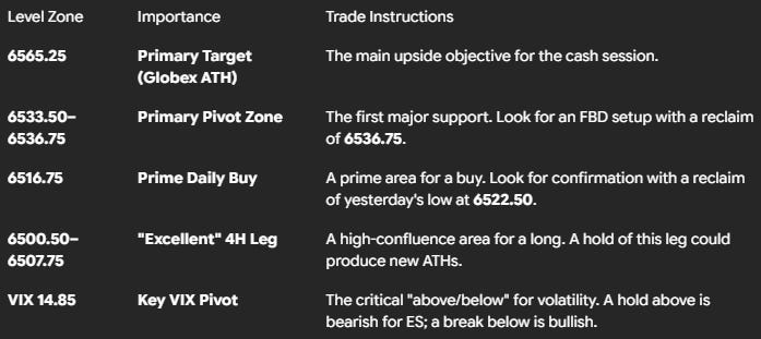 We had an excellent trade towards the end of the day yesterday when price reclaimed the significant daily at 6533.50. That setup has led to a 20+ point grind higher all night. The real question is what happens today. We have serious red-tag news pre-market at 8:30 AM ET with Core CPI and Unemployment Claims, so we must be prepared for either direction. Let's get right into the levels.
