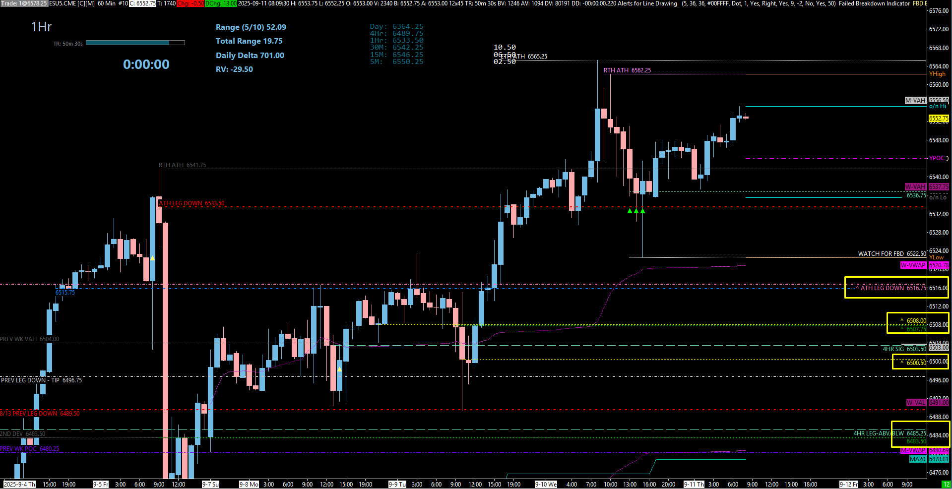 Primary Pivot: The daily at 6533.50. A break and hold below this level opens the door for a deeper pullback to test the levels below.