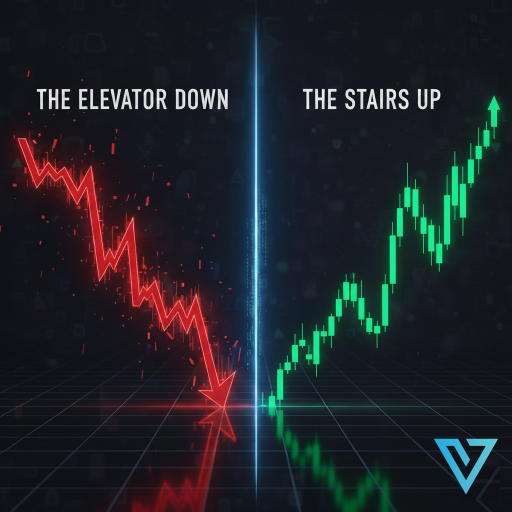 The market isn’t random. It’s driven by the collective emotions and mechanics of its participants. The next time you see that 2% drop, you’ll know exactly what’s happening: the crowd is taking the elevator. And when you feel that slow, relentless grind, you’ll know the pros are patiently taking the stairs.